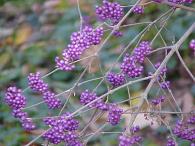Keř Callicarpa bodinieri -krásnoplodka bodinierova-s barevnými fialovými bobulkami, které jsou velmi dekorativní, zvláště po opadu listí a vydrží na keři i během počáteční zimy.