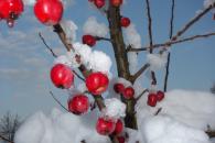 ´Red Sentinel´- zimní okrasná jabloň se zářivě růžovočerveným miniplodem, v průměru až cca 5cm. Plody zůstávají i po opadu listí a působí velice elegantně přes vánoce, dle zimy až do února visí na stromku, mráz ani sníh nevadí, plody jedlé, sladce navinulé.